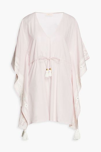 Crocheted lace-trimmed cotton-blend voile pareo