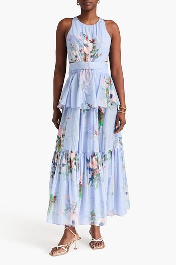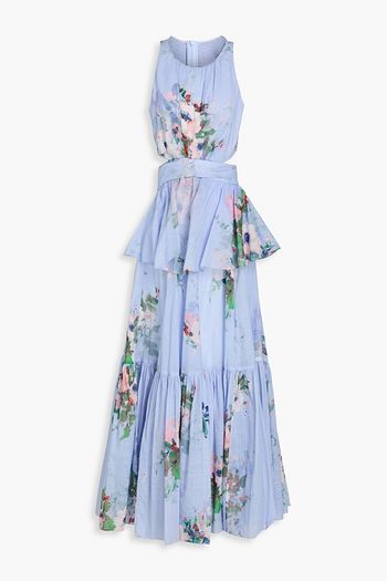 Cold-shoulder floral-print linen and silk-blend maxi dress