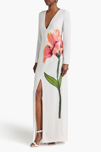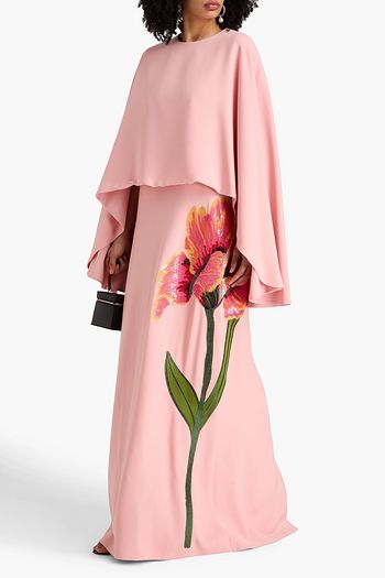 Off-the-shoulder floral-appliquéd sequined tulle mini dress