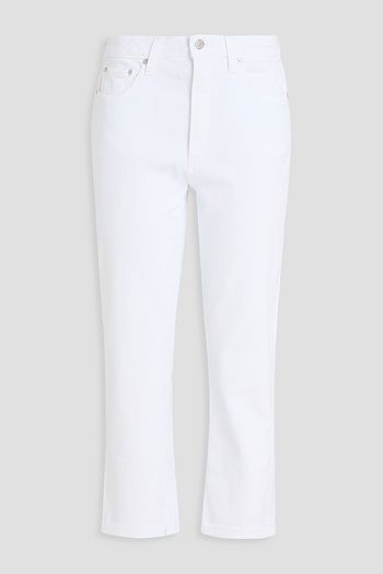 Cropped distressed embroidered printed high-rise boyfriend jeans