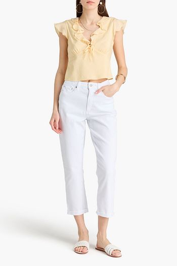 Cropped appliquéd distressed high-rise boyfriend jeans
