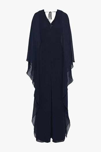Crystal-embellished printed silk crepe de chine jumpsuit