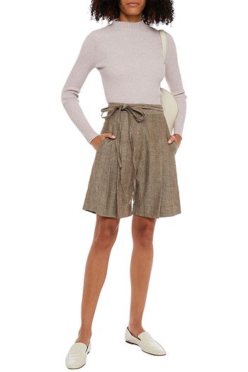 Ruffled ribbed mélange cashmere turtleneck sweater