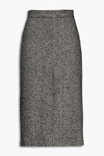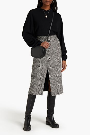 Mélange silk and cotton-blend midi pencil skirt