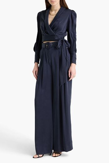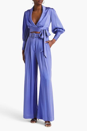 Cropped printed silk-satin top