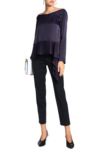 Logo-appliquéd pleated stretch-cotton poplin shirt