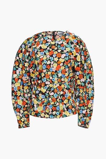 Camille ruffled georgette-paneled floral-print crepon blouse
