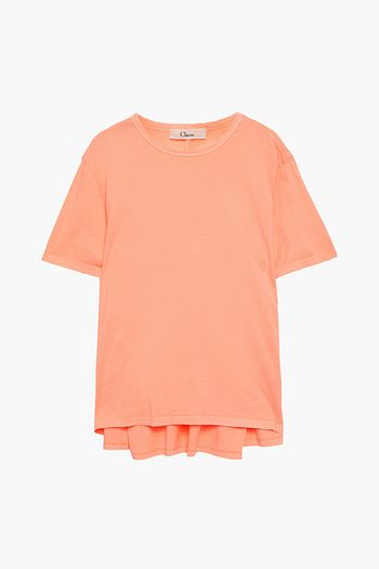 Paneled pleated cotton and modal-blend T-shirt