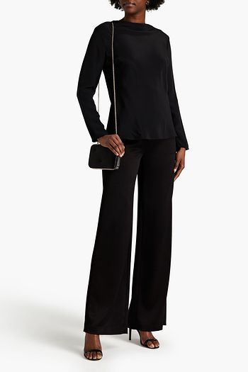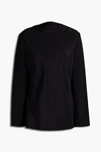 Kevia pleated crepon-paneled silk crepe de chine blouse