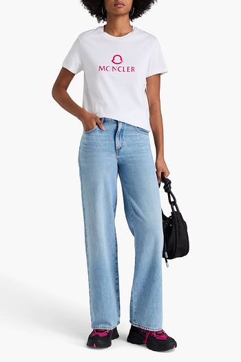 Embroidered printed cotton-jersey T-shirt