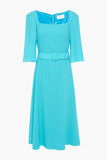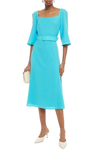 Flared pintucked wool-blend crepe midi dress