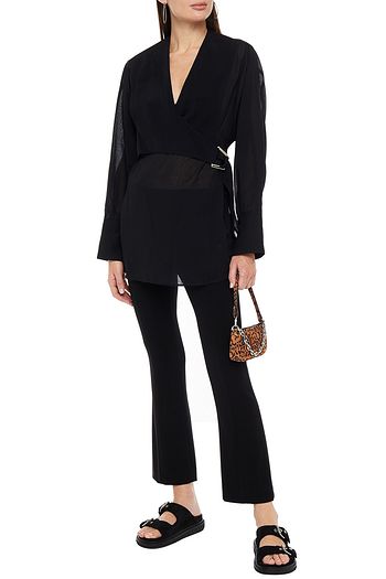Wrap-effect crepe de chine blouse
