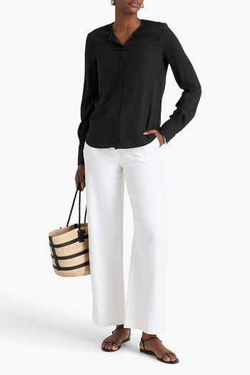 Pleated cotton-blend twill midi wrap skirt