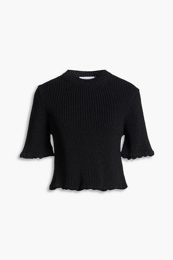 Jaqueline cropped ribbed-knit polo sweater