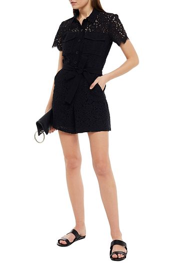 Cotton-blend corded-lace playsuit