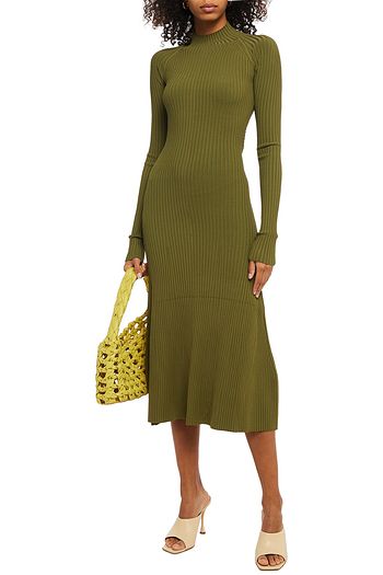 Interlink cutout layered stretch-crepe and ribbed-knit midi dress