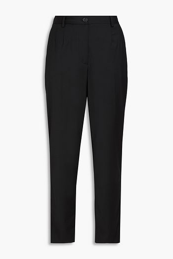 Cropped button-detailed stretch-cotton straight-leg pants