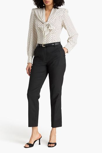 Cropped jacquard-trimmed floral-print crepe tapered pants