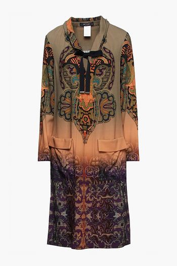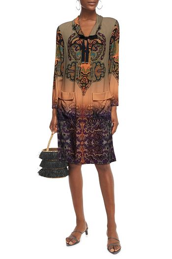 Tie-neck printed silk crepe de chine mini dress