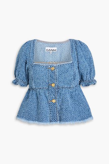 Tie-detailed jacquard-denim peplum top