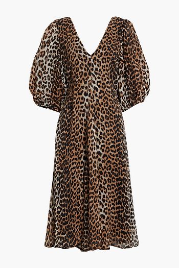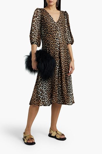 Ruffle-trimmed leopard-print cotton-poplin mini dress