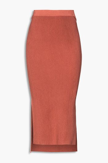 Ribbed silk-blend midi pencil skirt