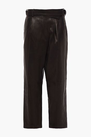 Cropped belted leather straight-leg pants