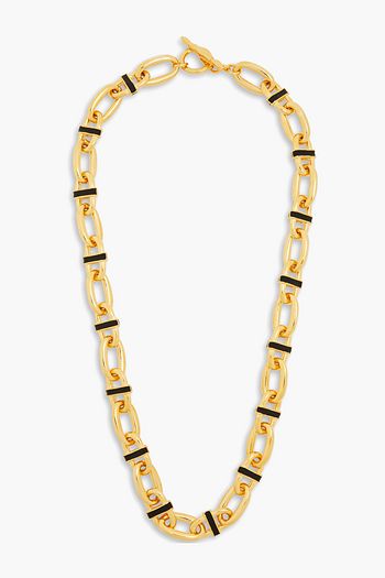 22-karat gold-plated, bead, resin and tasseled cord necklace