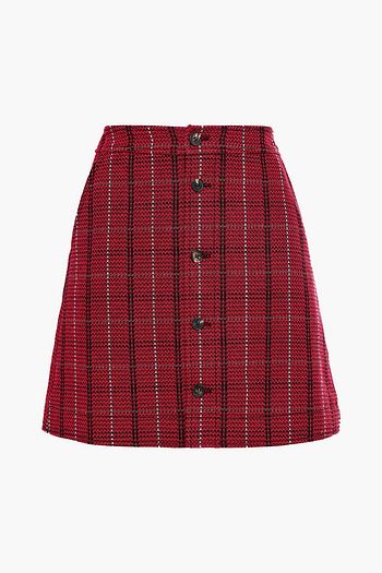 Button-detailed checked woven mini skirt