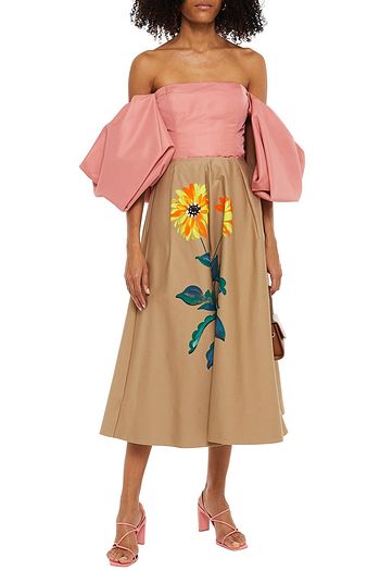 Off-the-shoulder cropped cotton-blend poplin top