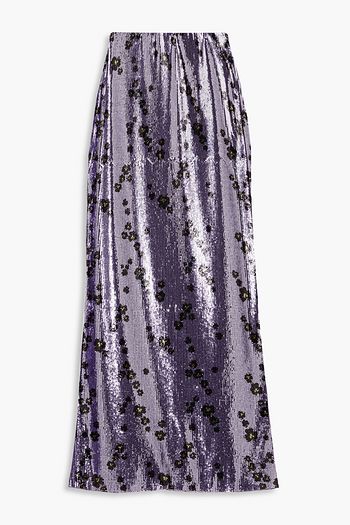 Floral-print plissé-chiffon maxi skirt
