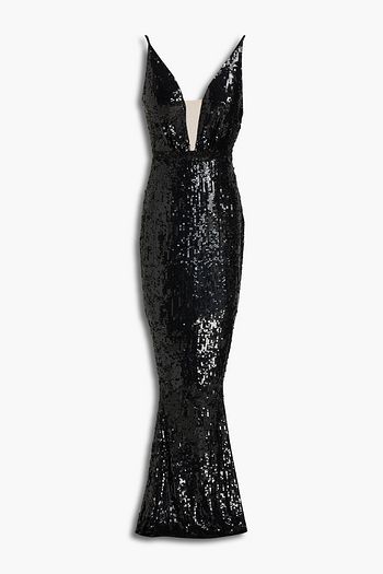 Lexie off-the-shoulder embellished wool and silk-blend mini dress