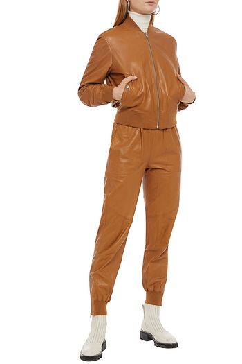 Gathered leather track pants