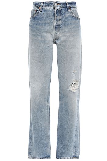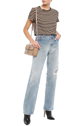 70s Stove Pipe cropped distressed mid-rise straight-leg jeans