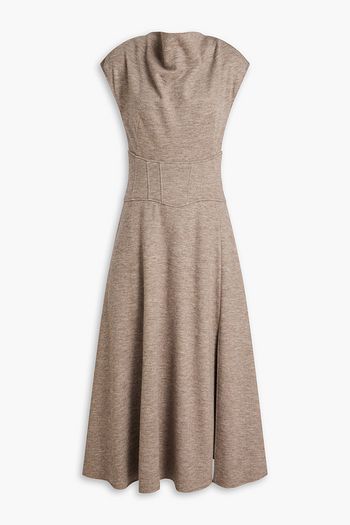 Tie-front ribbed cotton and cashmere-blend midi dress