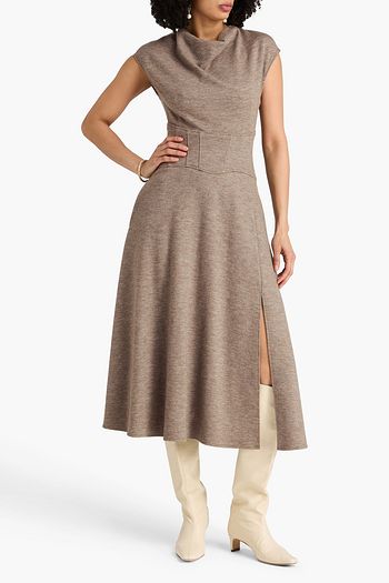 Ulyssia belted stretch knit-paneled midi dress