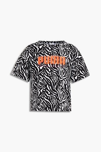 Cropped printed cotton-jersey T-shirt