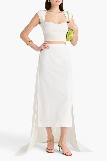 Pleated cotton-blend faille maxi skirt