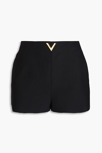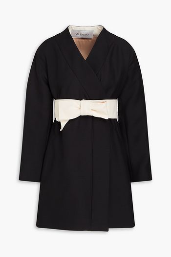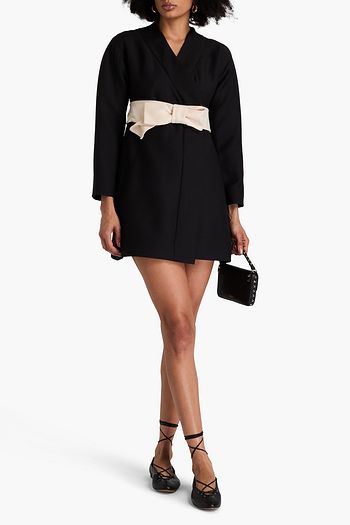 Bow-embellished off-the-shoulder wool and silk-blend mini dress