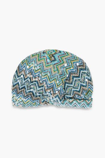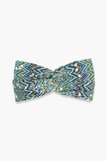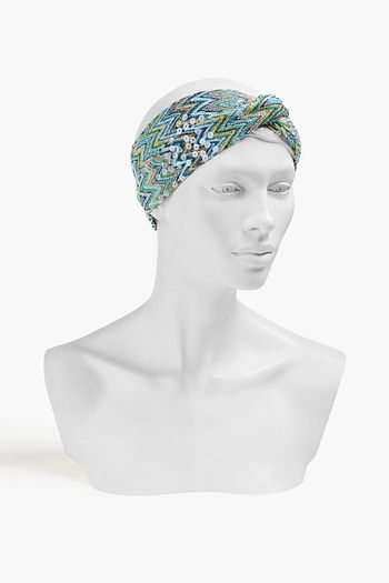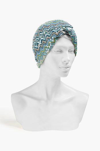 Sequin-embellished crochet-knit turban