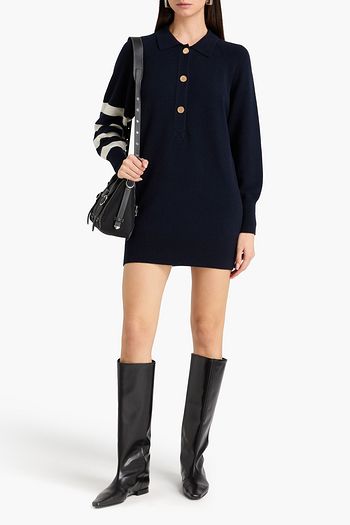 Printed wool-blend crepe mini dress