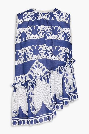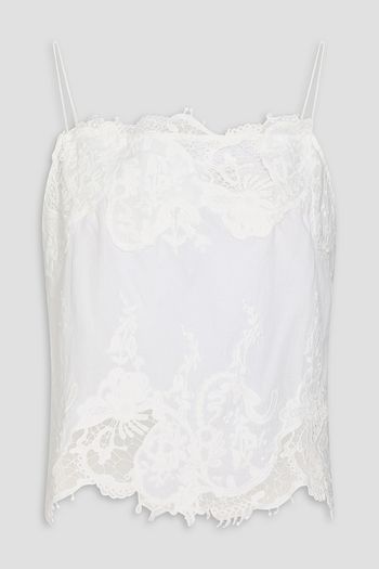 Donna macramé lace-paneled linen and cotton-blend blouse
