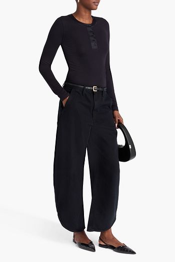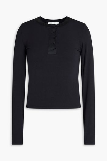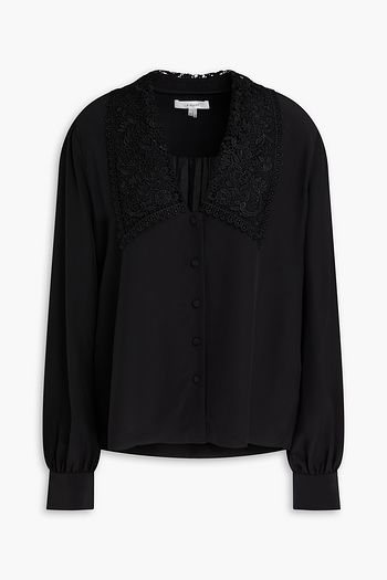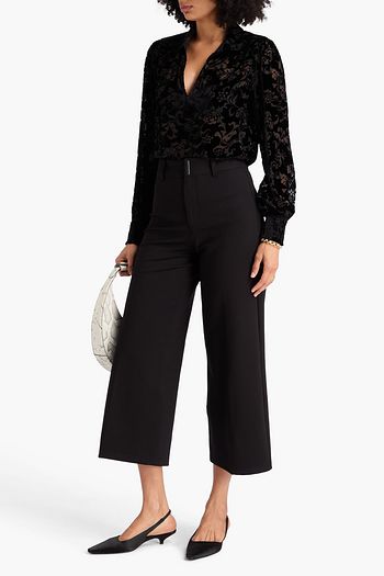 Liana chiffon-paneled wool and silk-blend turtleneck top