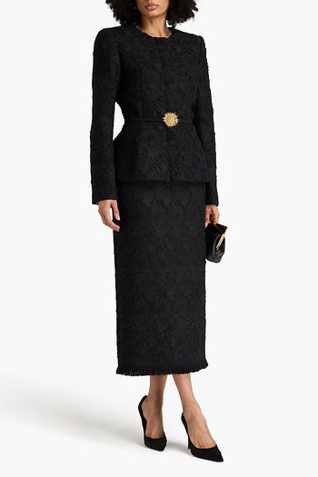 Cold-shoulder floral-print cotton-blend jacquard dress