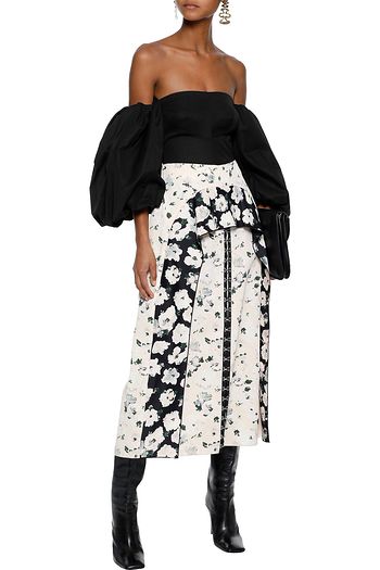 Off-the-shoulder printed cotton and silk-blend peplum top