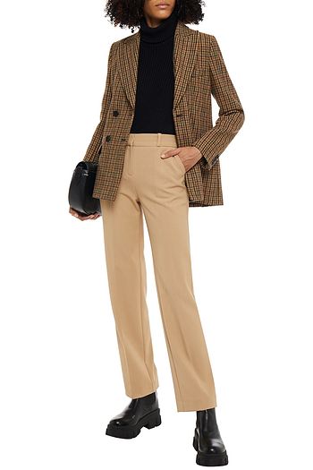 Ruffle-trimmed wool-blend crepe straight-leg pants
