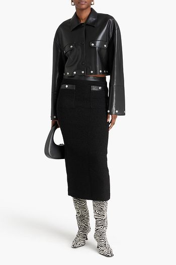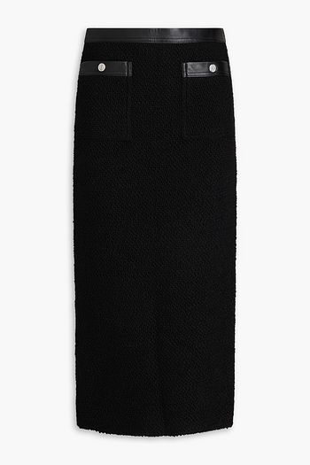 Wrap-effect bouclé-knit cotton-blend midi skirt