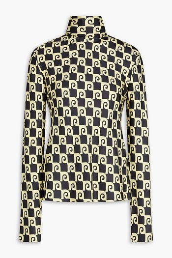 Rosie ruffled taffeta-trimmed printed stretch-jersey blouse