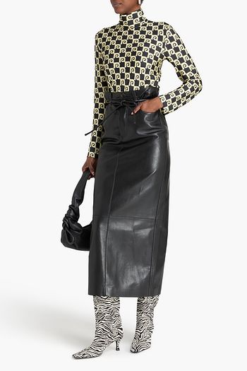 Knotted leopard-print jersey turtleneck top