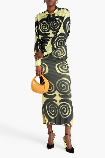 Ruched floral-print stretch-mesh shirt